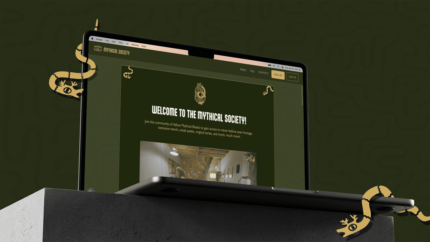 I translated the serpent imagery from the logo into a full visual system. This included creating illustrations for repeating patterns, tiered icon borders, and decorative serpents to be used as versatile graphic elements throughout the Mythical Society platform.
