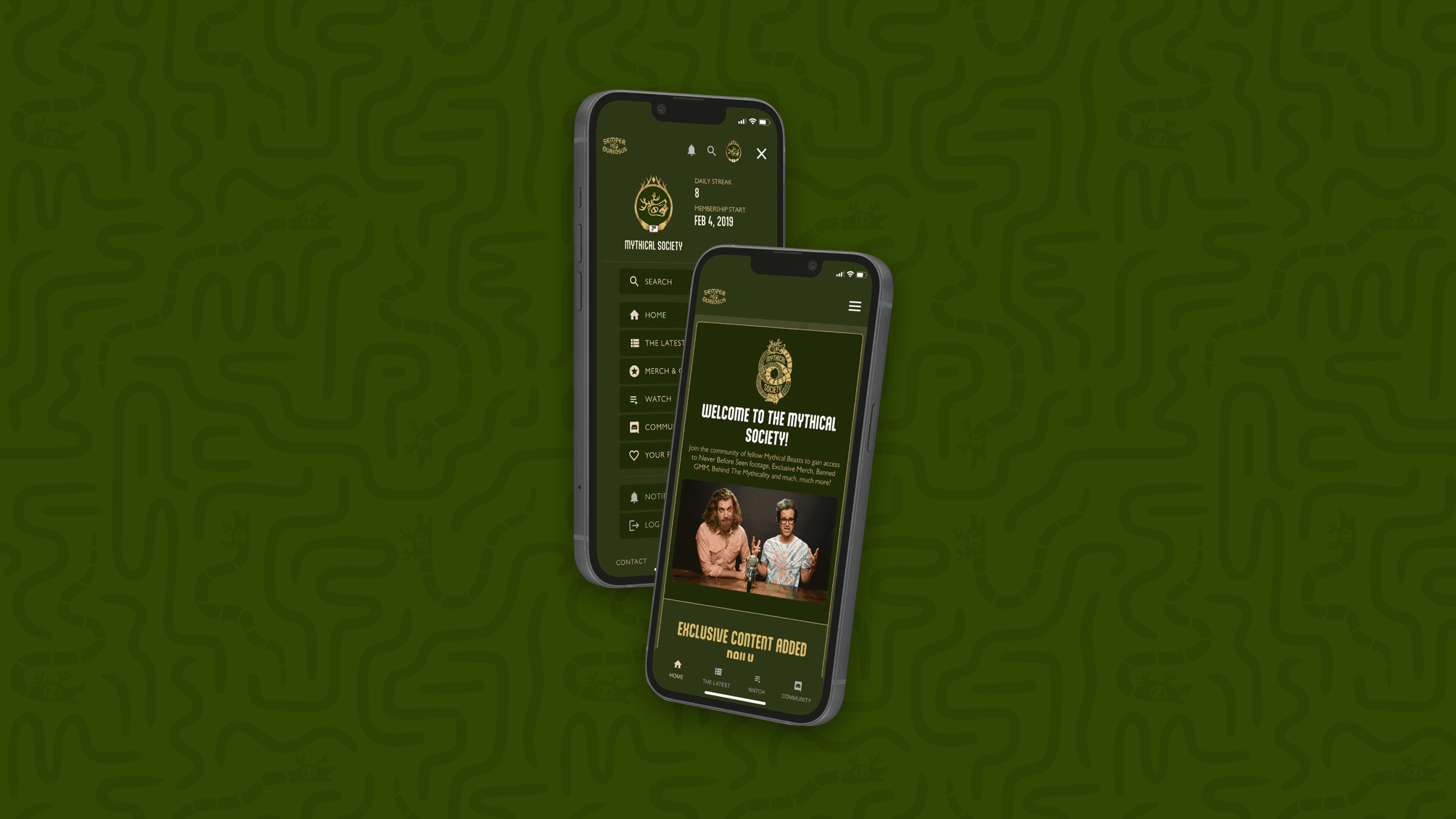Mythical Socity is an app, website, and subscription service for Good Mythical Morning fans to unlock premium content, behind-the-scenes footage, and exclusive merchandise.