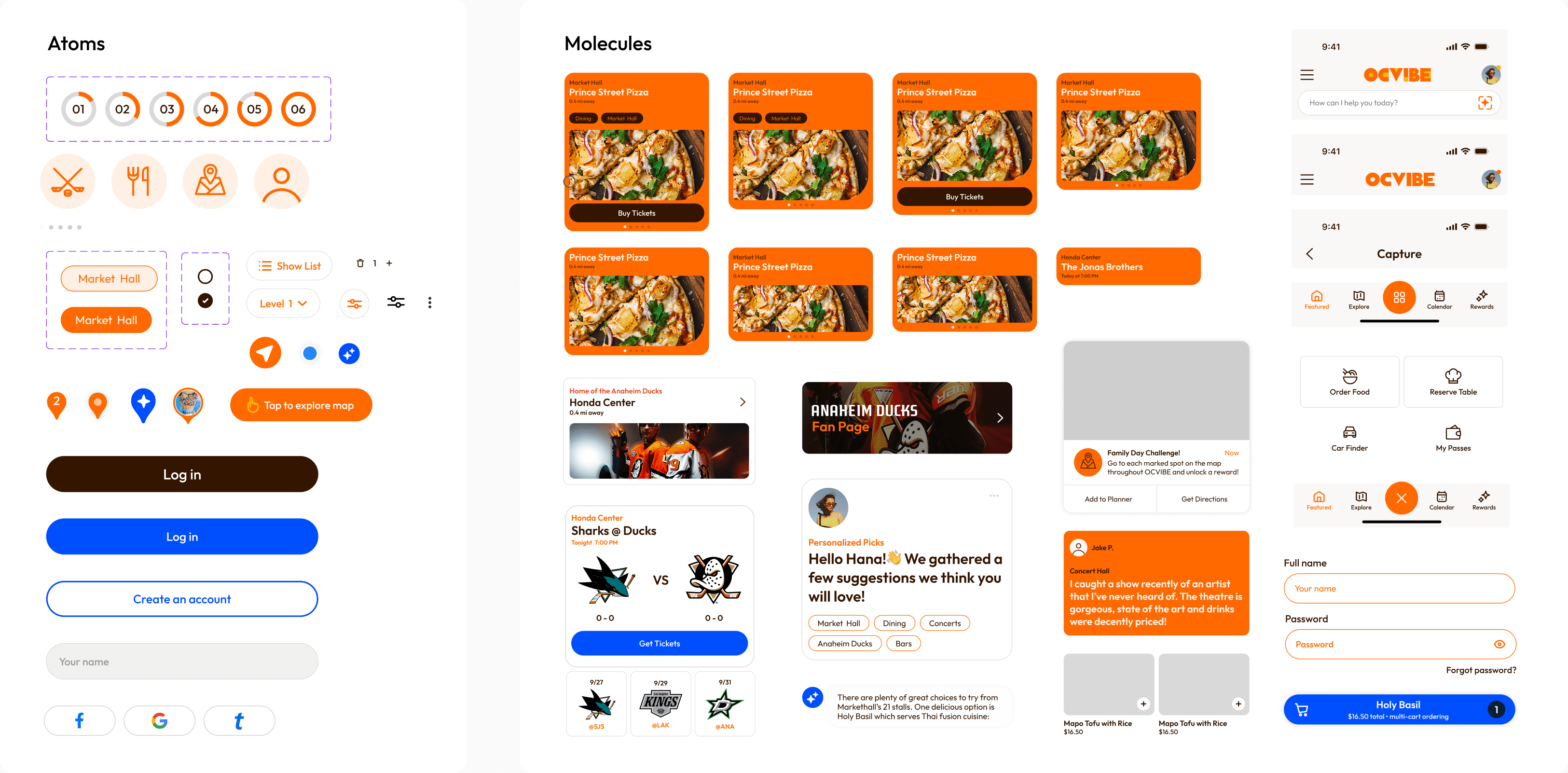 To bridge OCVIBE and the Anaheim Ducks, I developed a modular system using orange as our common ground. This atomized approach ensured these complex ecosystems remained visually consistent while scaling for future development.