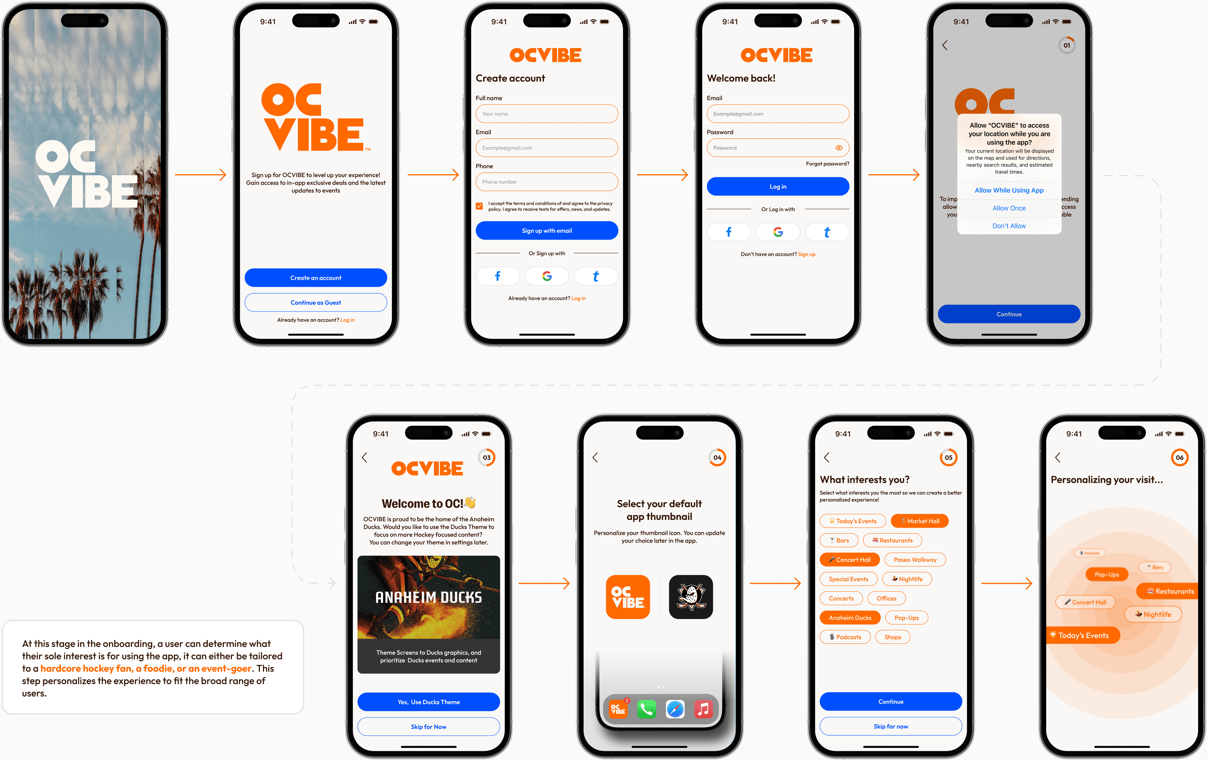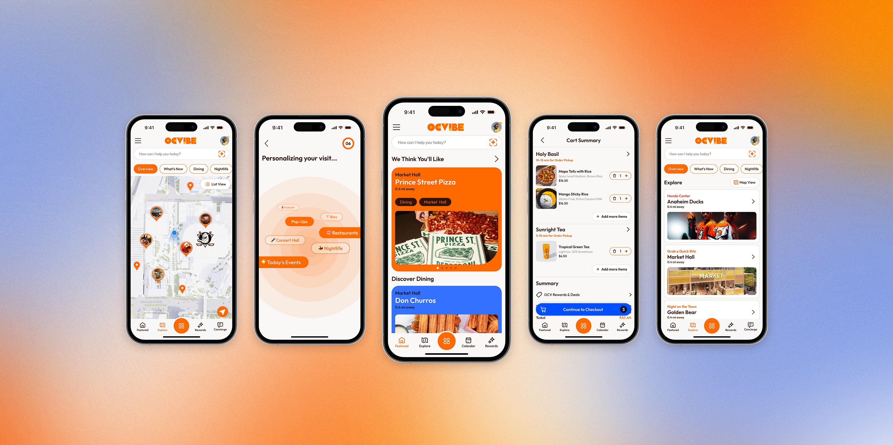 OCVIBE is a landmark $4B sports and entertainment district in Anaheim. Launching this destination requires a mobile app ecosystem that integrates live events, dining, and fan loyalty into a singular, approachable experience.
