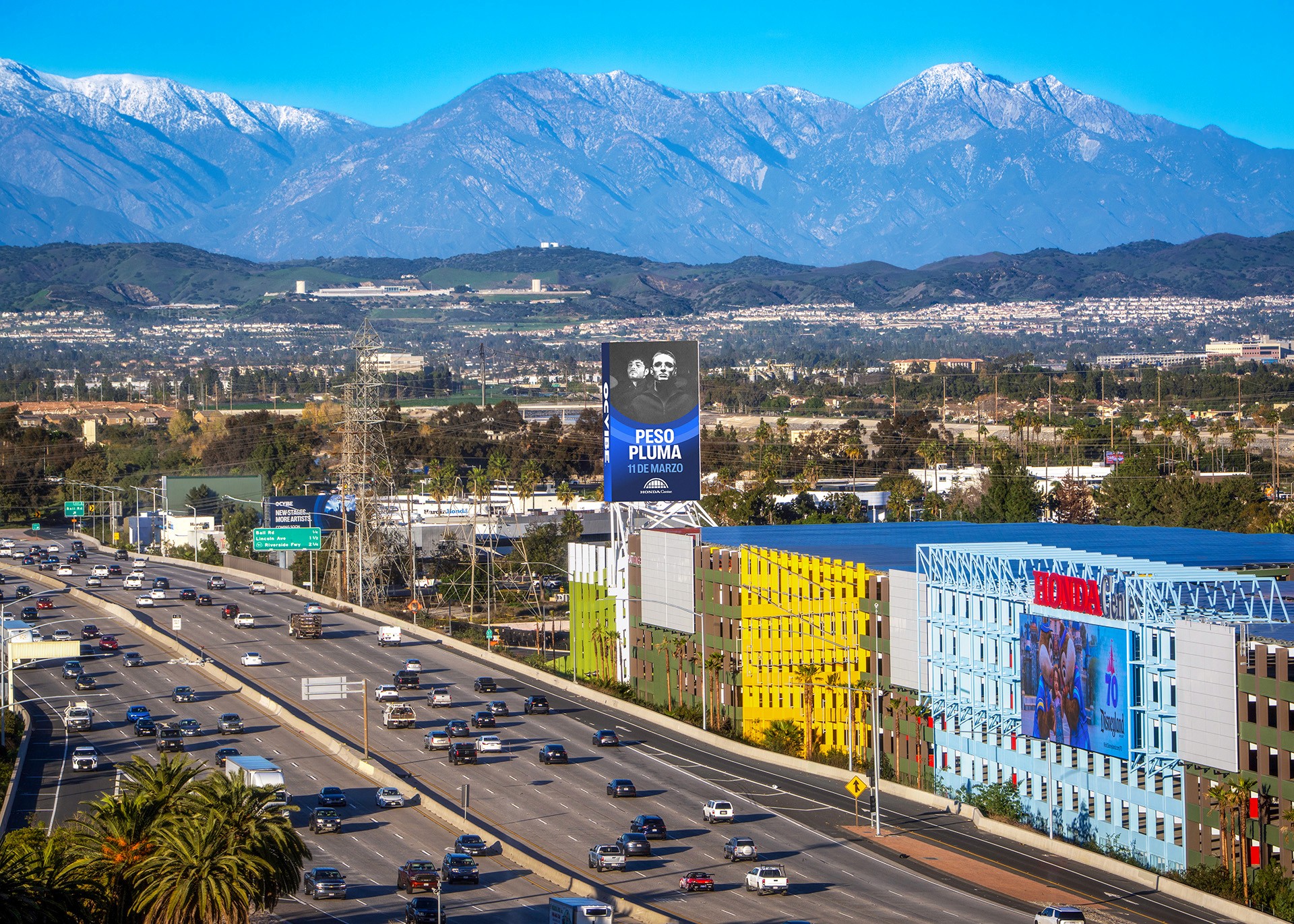 Standing tall along the 57 Freeway in Anaheim, these two large-scale digital spectaculars promote OCVIBE and Honda Center. The broader campaign also includes a series of billboards throughout Orange County.