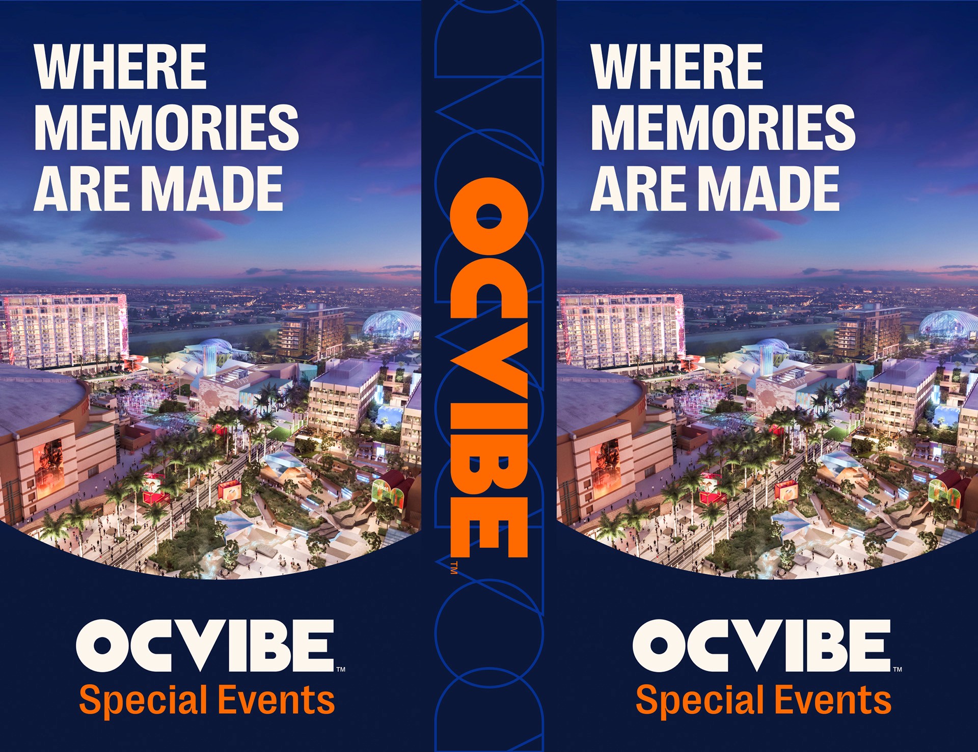 I worked on the out-of-home design system for OCVIBE, focusing on clear layouts that are easy to scan from a distance while building brand recognition. We created dedicated layouts for different objectives, whether we were promoting Honda Center concerts, highlighting upcoming food spots in the district, or special events.