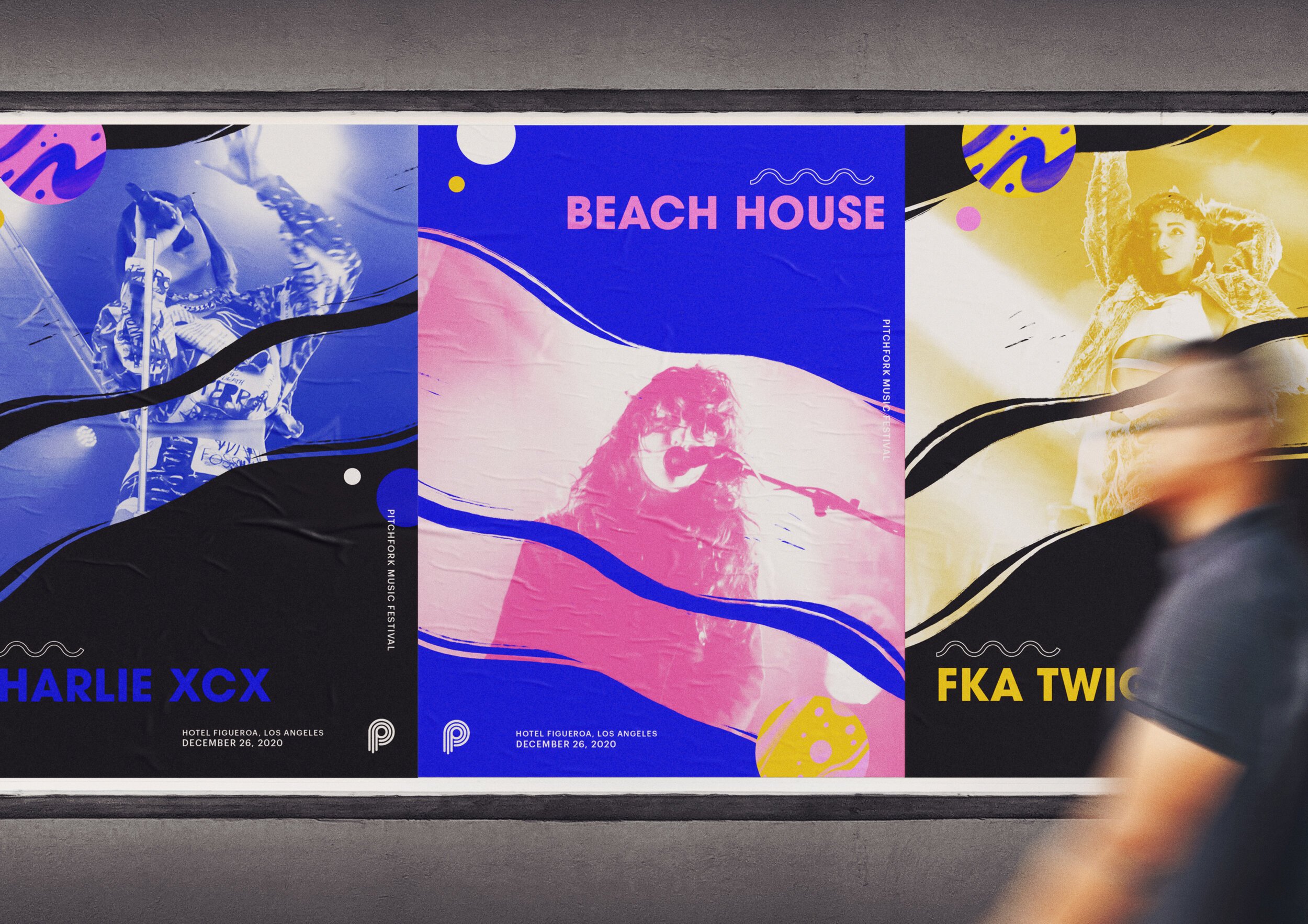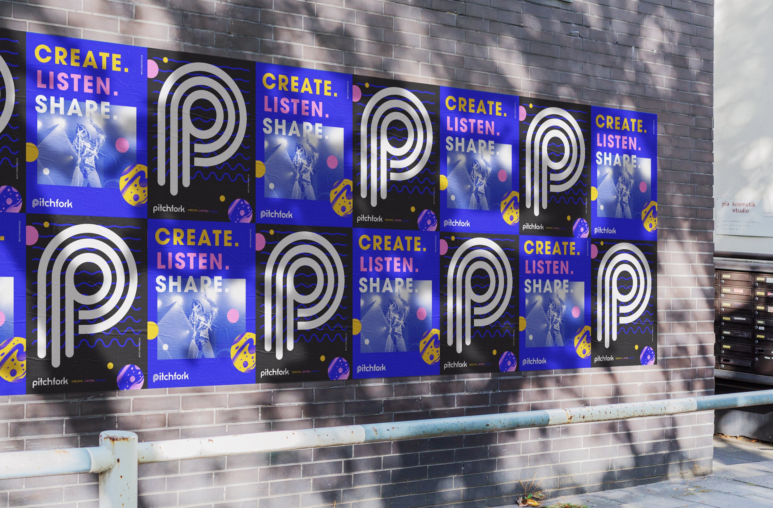 I gave the Pitchfork logo a fresh spin by taking inspiration from a vintage record, while the taper of the “P” nods to the actual end of a pichfork. For the palette, I liked the idea of primary colors to represent the wide range of music and diverse community of music lovers.