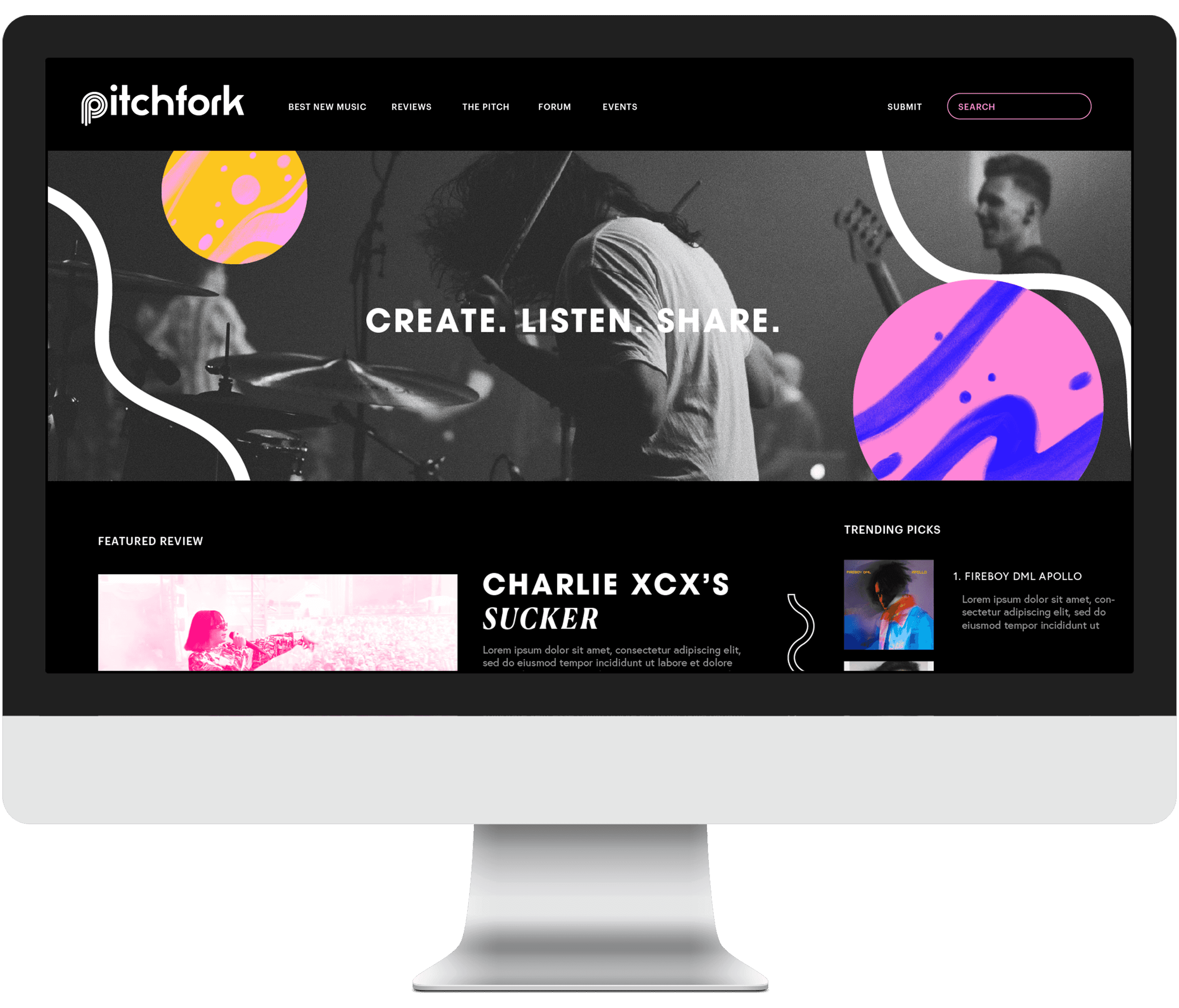 A visual overhaul concept of Pitchfork’s media identity, focused on capturing their "anti-mainstream" spirit through bold typography, vibrant colors, and dynamic motion.
